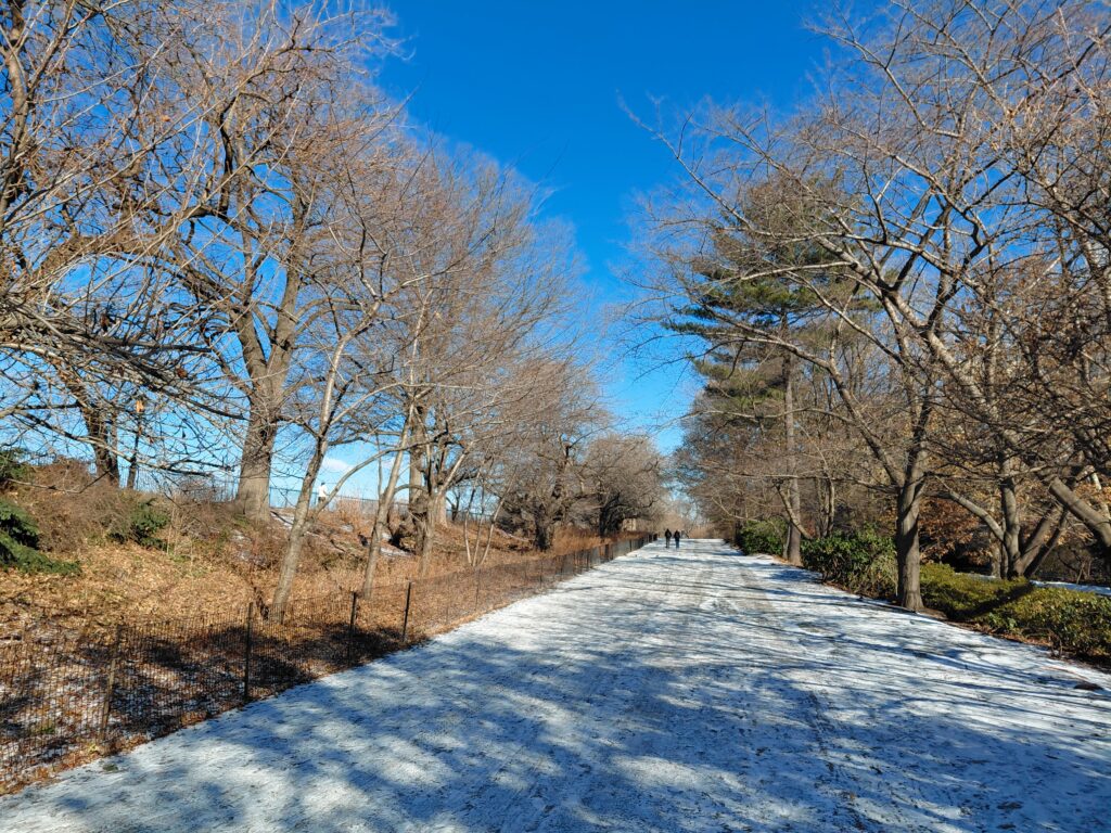 But January 1st dawned bright, if freezing, with a lovely dusting of fine snow, perfect for a slow stroll around the Reservoir and Great Lawn.