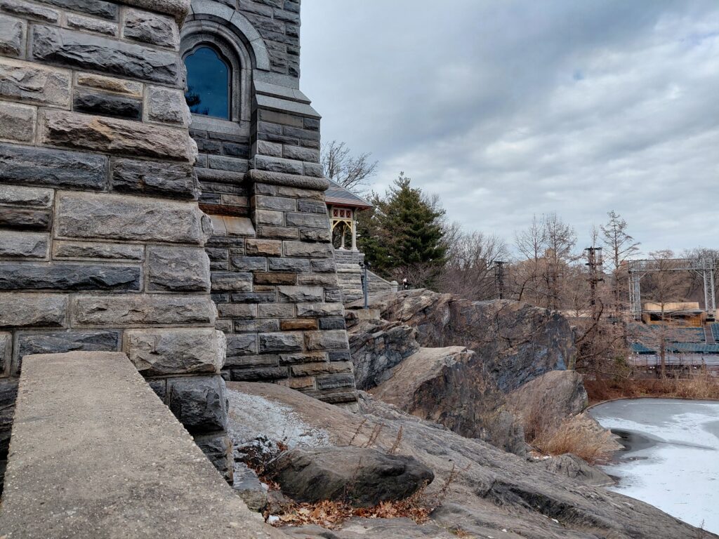 We returned again to the park today; this time heading south and west to conquer the two high peaks in the park at Vista Rock (Belvedere Castle) and Summit Rock (Seneca Village), checking out the maintenance going on at the Shakespeare Garden between the two.