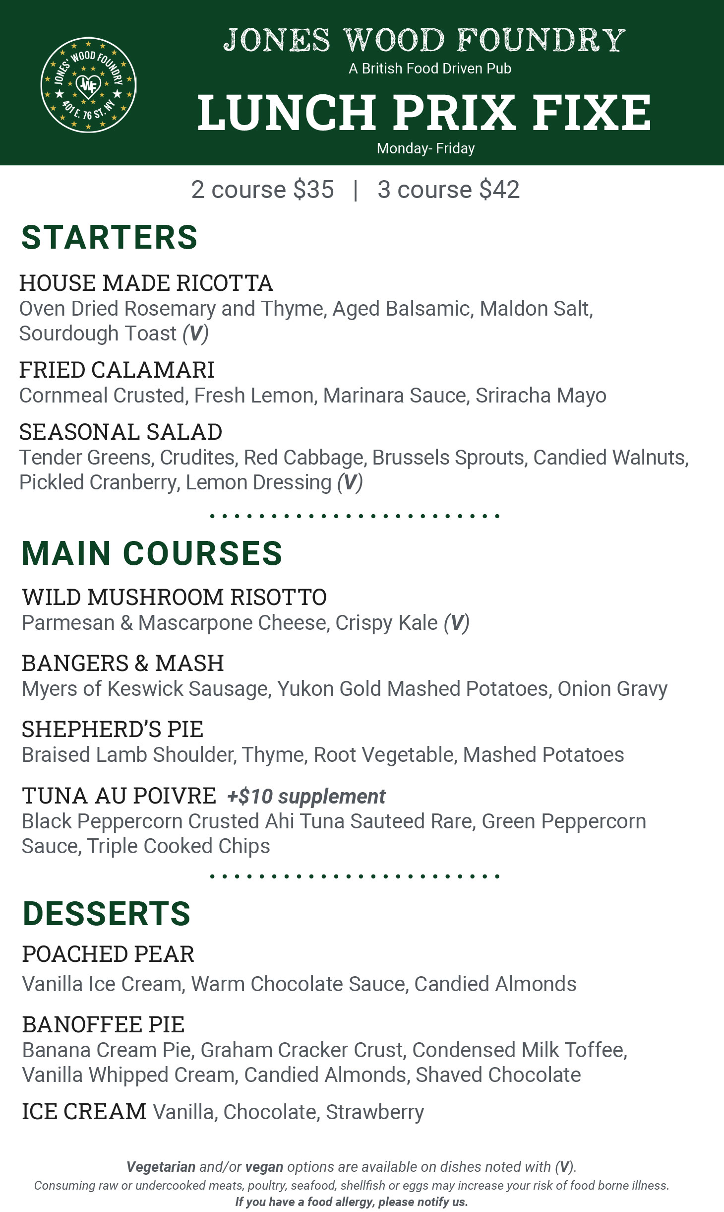 Select 2 of your favorite dishes for just $35 or a 3 course meal for only $42.